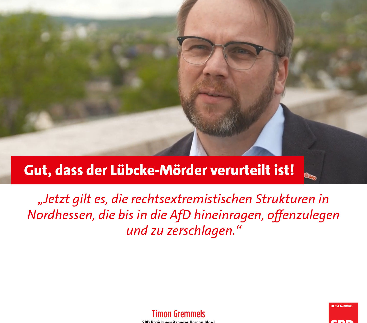 Nach der Verurteilung von Stephan E. zu lebenslanger Haft wegen des Mordes am Kasseler Regierungspräsidenten Dr. Walter Lübcke erklärt der SPD-Bezirksvorsitzende Timon Gremmels MdB: