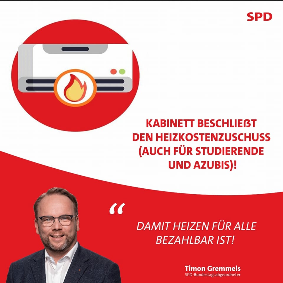 „Die stark gestiegenen Energiekosten treffen vor allem Menschen mit kleineren Einkommen besonders stark. Deshalb bringt die Bundesregierung als eines ihrer ersten Vorhaben einen einmaligen Heizkostenzuschuss auf den Weg. Davon profitieren rund 2,1 Millionen Bürgerinnen und Bürger“, erklärt der Kasseler SPD-Bundestagsabgeordnete Timon Gremmels.