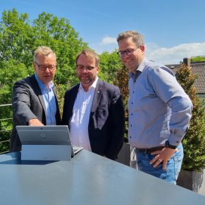 v.l.n.r.: Übergabe der Förderbescheide im Bundesverkehrsministerium mit dem Parlamentarischen Staatssekretär beim Bundesminister für Verkehr und digitale Infrastruktur Steffen Bilger, der Kasseler SPD-Bundestagsabgeordnete Timon Gremmels sowie Timo Eckert vom Umwelt- und Gartenamt der Stadt Kassel.