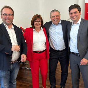 Beim Unterbezirksparteitag der SPD Kassel-Stadt – mit Esther Kalveram, Manfred Merz und Dr. Ron-Hendrik Hechelmann (v.l.n.r.)