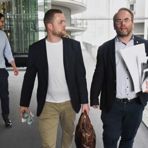 Abstand halten auch im Aufzug des Reichstags mit Kollegin Josephine Ortlep