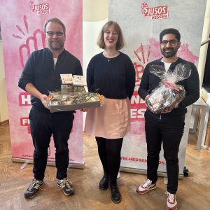 Landeskonferenz der hessischen Jusos: Verabschiedung von Sophie Frühwald (Mitte) – gemeinsam mit Kaweh Mansoori (Bezirksvorsitzender Hessen-Süd)