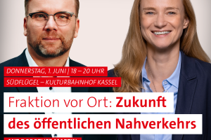 SPD-Bundestagsfraktion vor Ort lädt zur Fraktion vor Ort zum Thema „Zukunft des Öffentlichen Nahverkehrs – Daseinsvorsorge und Klimaschutz mit sozialer Perspektive“ am Donnerstag, 1. Juni 2023 – 18:00 Uhr, Südflügel Kulturbahnhof Kassel Raum 4, mit Timon Gremmels, MdB und Dorothee Martin, verkehrspolitische Sprecherin…