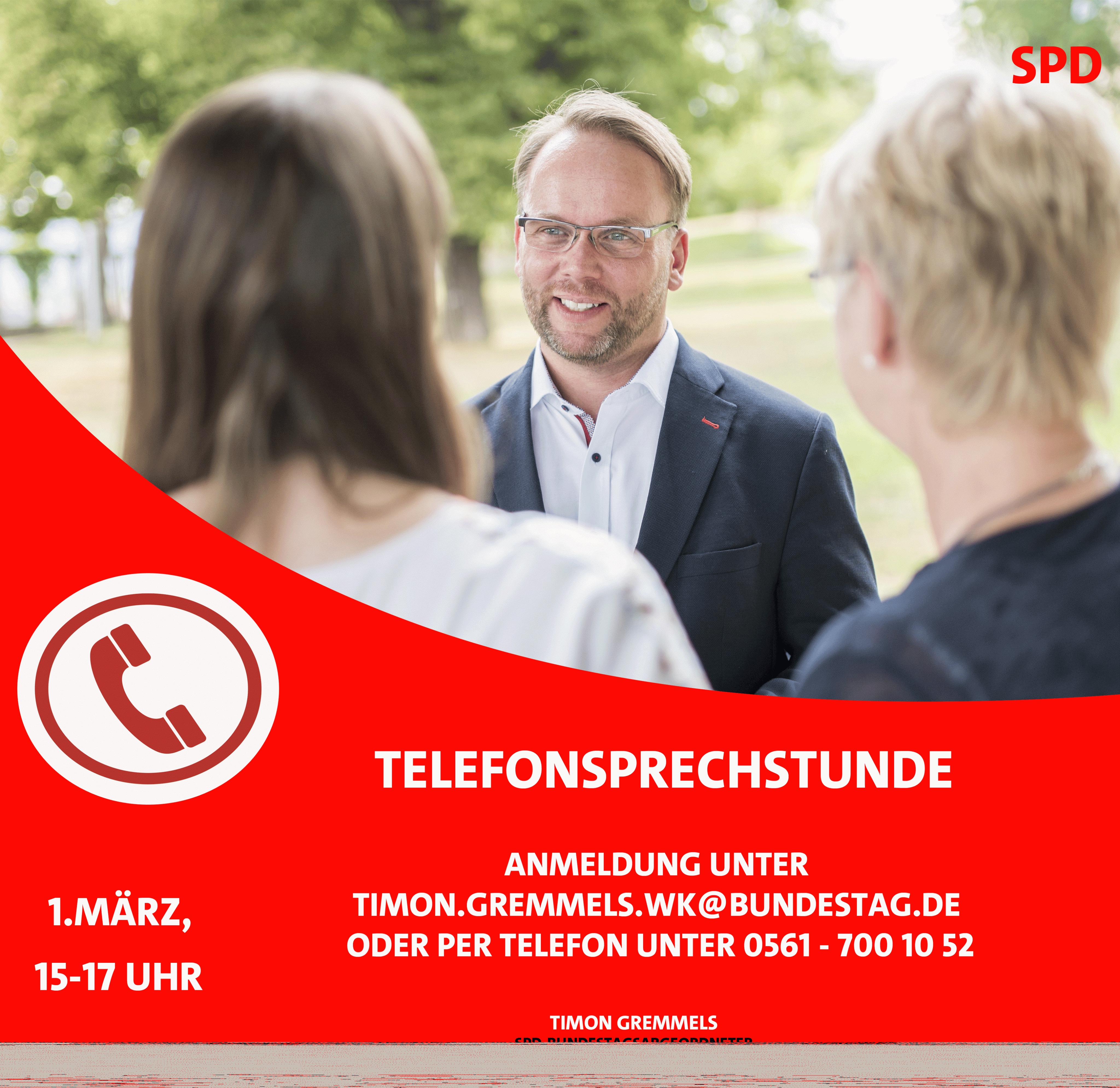 Dienstag, 1.März 2022 – 15 bis 17 Uhr Der Kasseler SPD-Bundestagsabgeordnete Timon Gremmels lädt am Dienstag, 1. März 2022 in der Zeit zwischen 15:00 und 17:00 Uhr zur Telefon-Bürgersprechstunde ein. […]